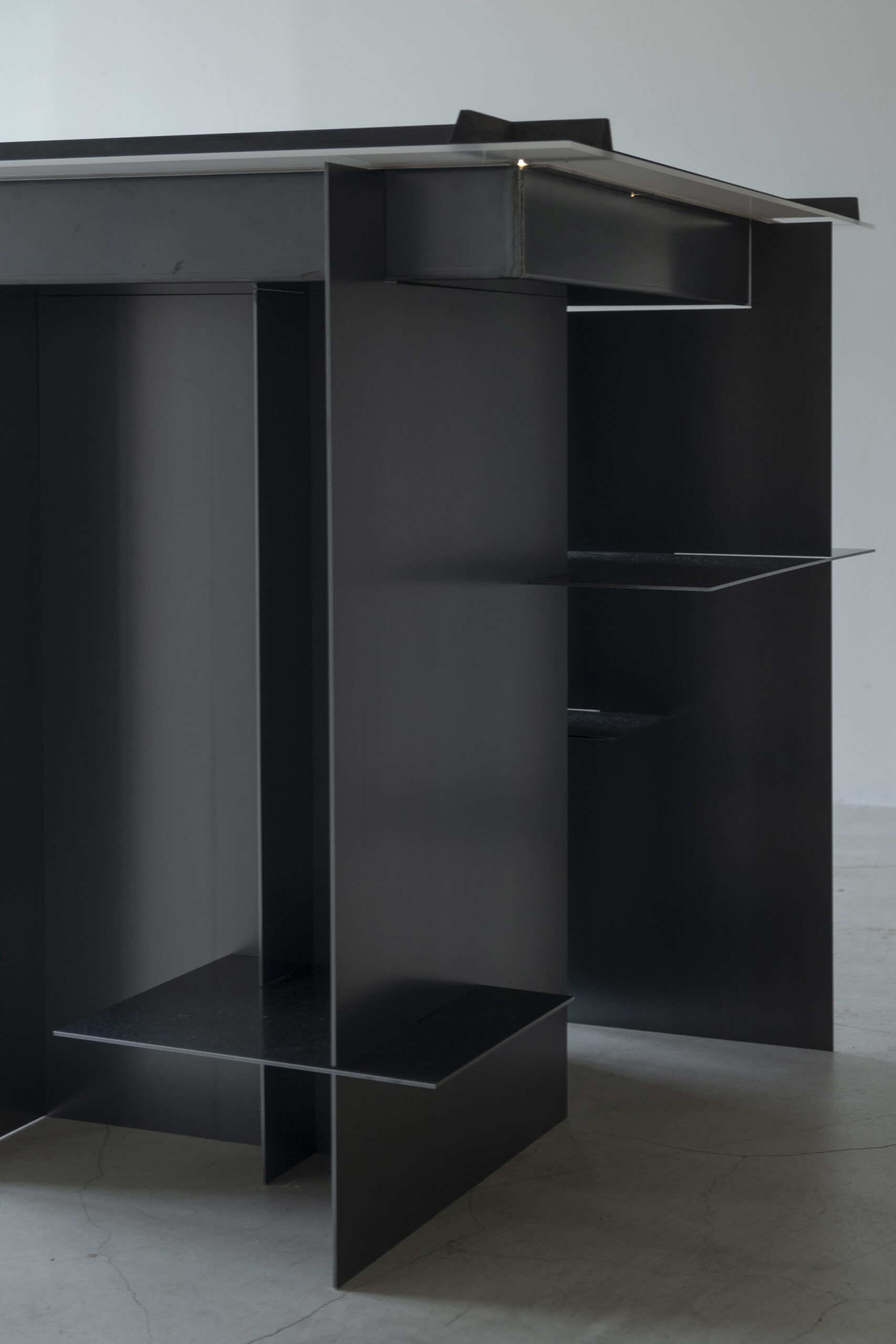 - Mill scale, Japanese cypress, persimmon tannin, charcoal, opal acrylic sheet
