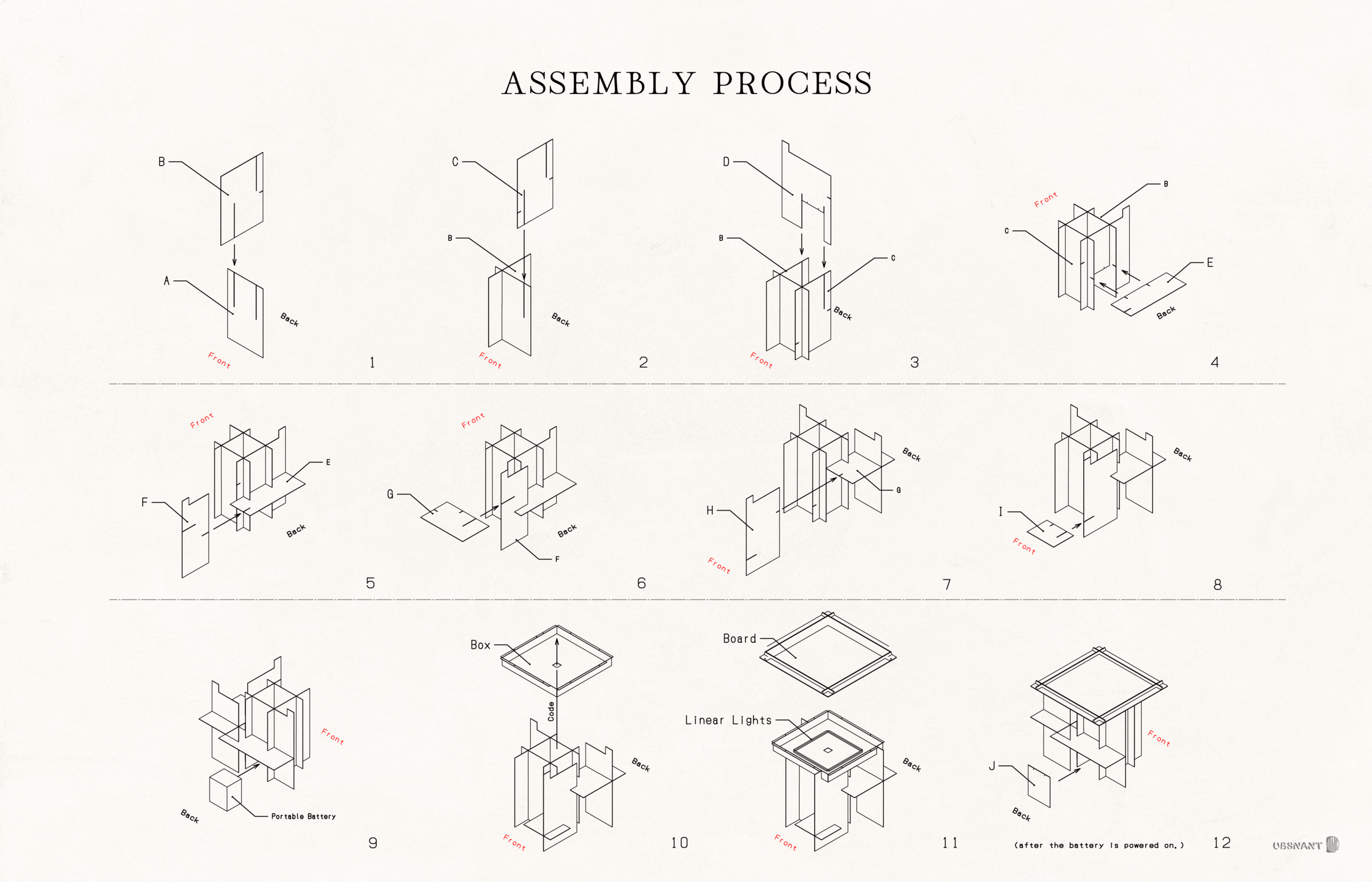 The semi-transparent material is an off-white acrylic, chosen to represent the transition from fire to electric light as a primary light source in daily life, while also honouring the lineage of materials like hemp, washi paper, and frosted glass.