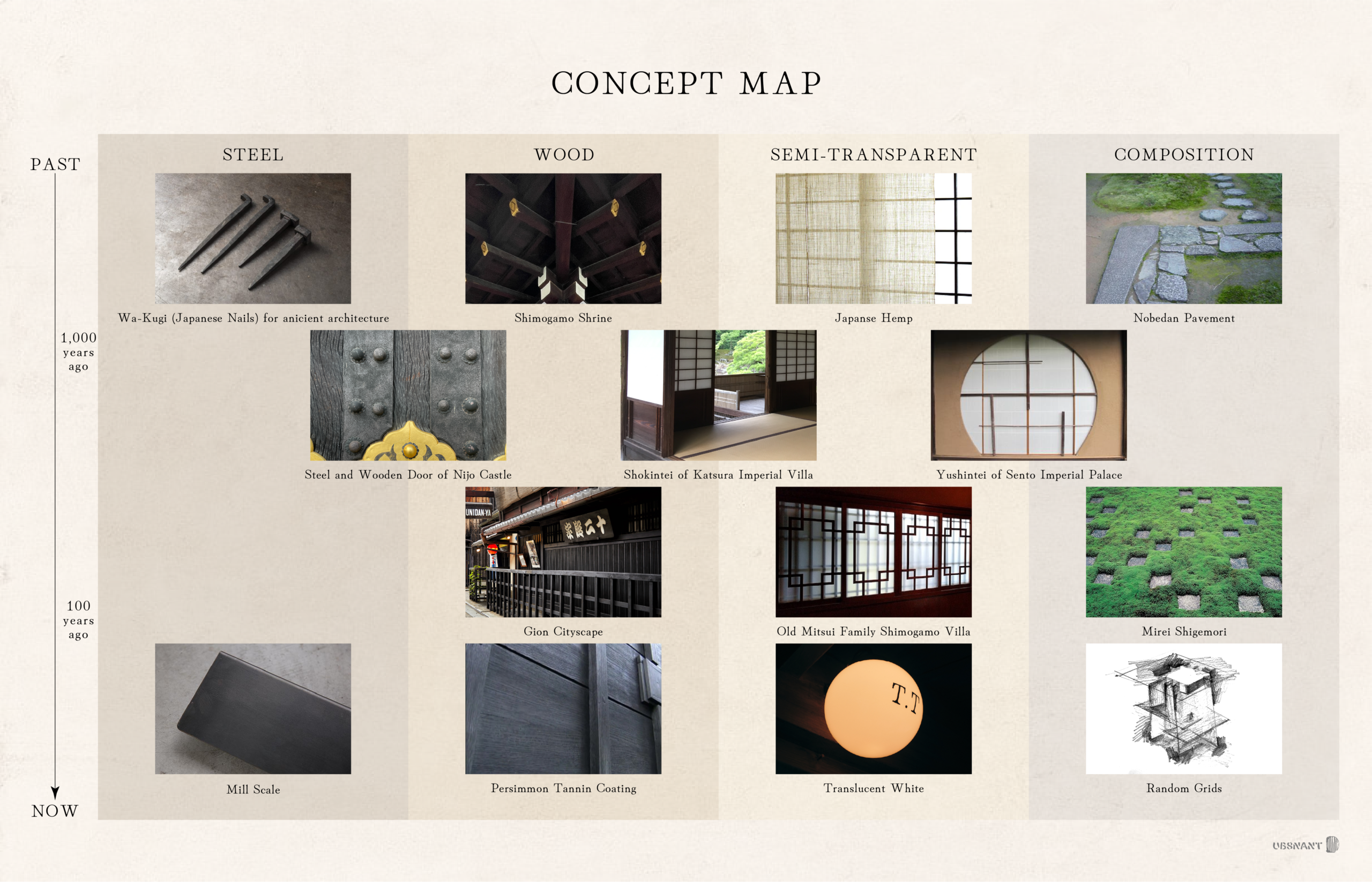 The design approach followed applied archaeology principles, reinterpreting time and techniques inherent in Kyoto architecture through the use of iron, wood, and translucent materials.